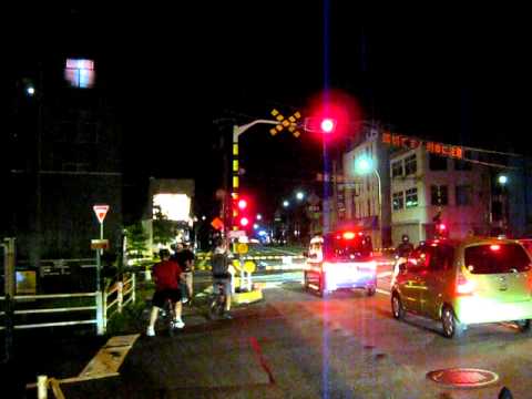 Lots of trains + lots of roads = plenty of crossings. We were out one night and caught this: